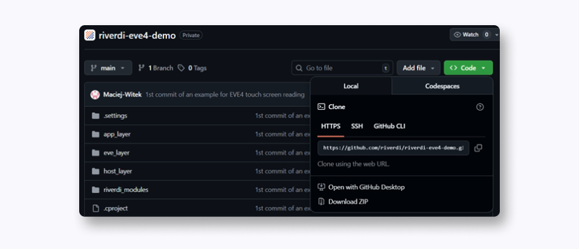 - Open the repository: Riverdi EVE demo