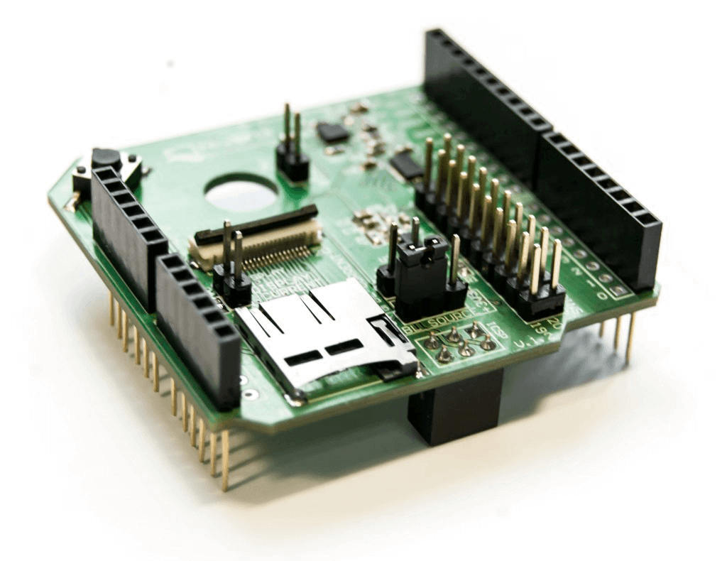 Lo scudo Riverdi include anche un connettore per altoparlanti esterni e uno slot per schede micro-SD in cui è possibile memorizzare musica o grafica. Sulla scheda è presente anche un pulsante di reset che viene utilizzato per resettare Arduino. Inoltre, lo shield Arduino Riverdi TFT consente di espandere i pin del modulo Riverdi TFT con intestazioni di pin di facile utilizzo.