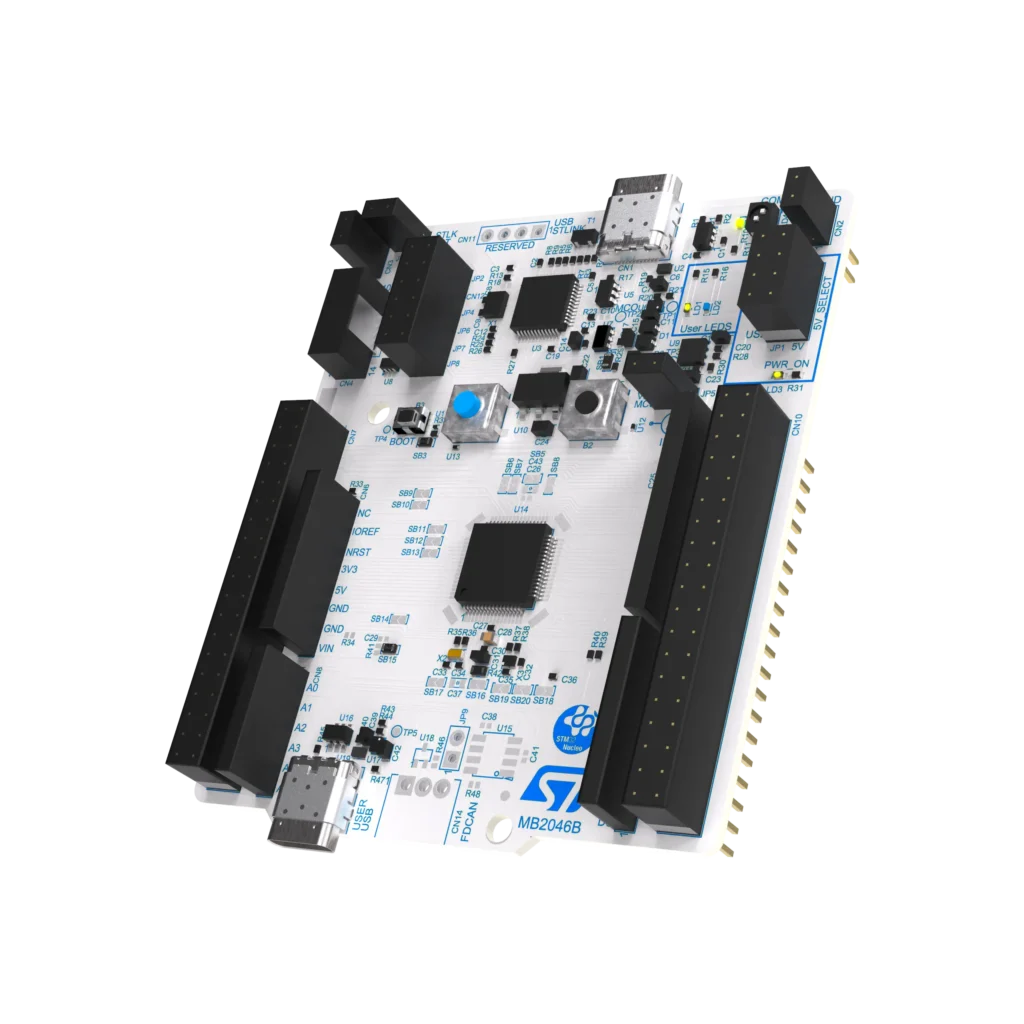 The STM32 Nucleo boards from STMicroelectronics are affordable development platforms designed for quick prototyping and experimentation with any STM32 MCU. They feature standardized connectors for easy integration with a variety of hardware add-ons, such as Arduino Uno, Nano, and ST morpho connectors. These boards include a built-in ST-LINK debugger/programmer, eliminating the need for additional equipment.